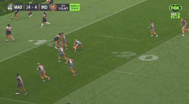 Indigenous 20 defeated Maori 14 (W). It took a little while to get going and the unidirectional wind had a heavy hand in making this a game of two halves. Defence was optional, getting close enough to the line meant that players could barge over through the wing/centre defenders, especially on the left side of the offence. Some nice moments of attacking skill on display; refer Intermission. We won’t see any of these players again until Origin in another 10 weeks.